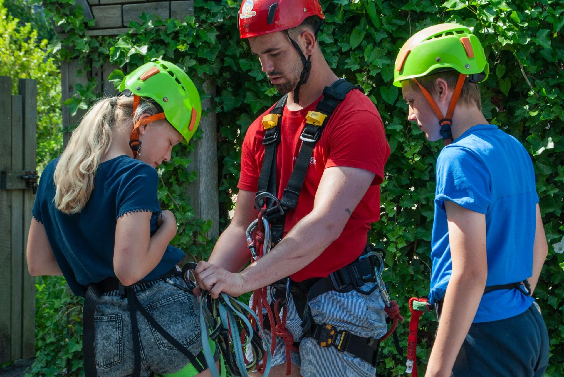 Vooraleer je start, krijg je een uitgebreide briefing van een Outsider monitor. Je krijgt je klimgordel en helm.