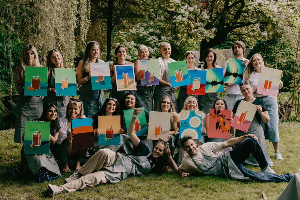 Bij de Paint & Sip Classic werken we rond één gekozen thema, maar het eindresultaat is voor iedereen uniek. Iedereen legt zijn eigen stijl, kleuren en accenten in het schilderij. Het proces is minstens zo leuk als het resultaat. Perfect voor teams die willen loskomen en het genot willen ervaren van iets moois te creëren.