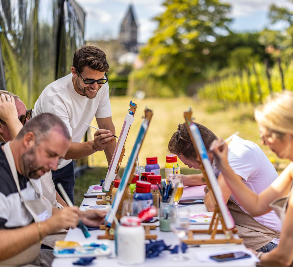 Tijdens de Paint & Sip workshop leer je je collega’s op een totaal andere manier kennen. Met een penseel in de ene hand en een glas in de andere werk je samen aan een creatief moment vol ontspanning en plezier.