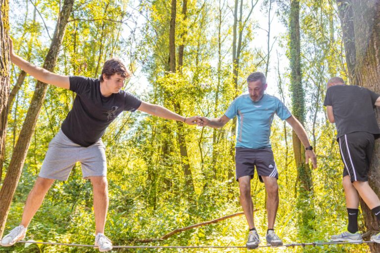 The team builders, hidden in the team building forest, immediately challenge the group. The monkey bridge, the balance bars, the wall …: one by one tasks that will ensure a solid piece of teamwork.