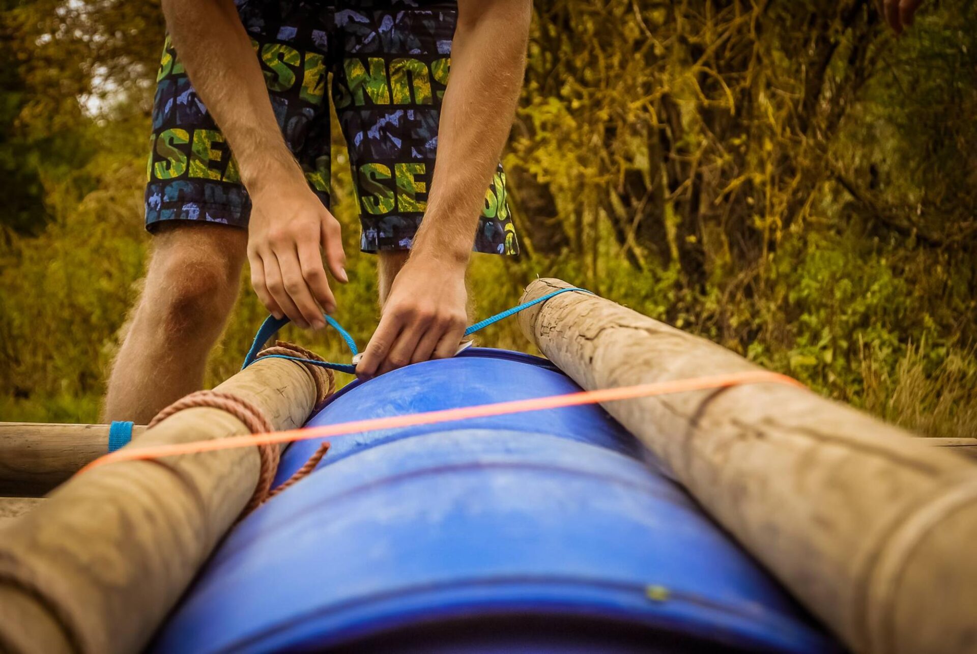 At the raft tour, you will receive as a team a package of barrels, beams and ropes to build your own raft. First you will learn some basic rafting techniques, then you will get to work yourself. Creativity, deliberation and dexterity determine who will be the first to assemble a stable and floating raft. No prefab fun here, everything depends on your cooperation. So fingers crossed for a *smooth* cooperation.