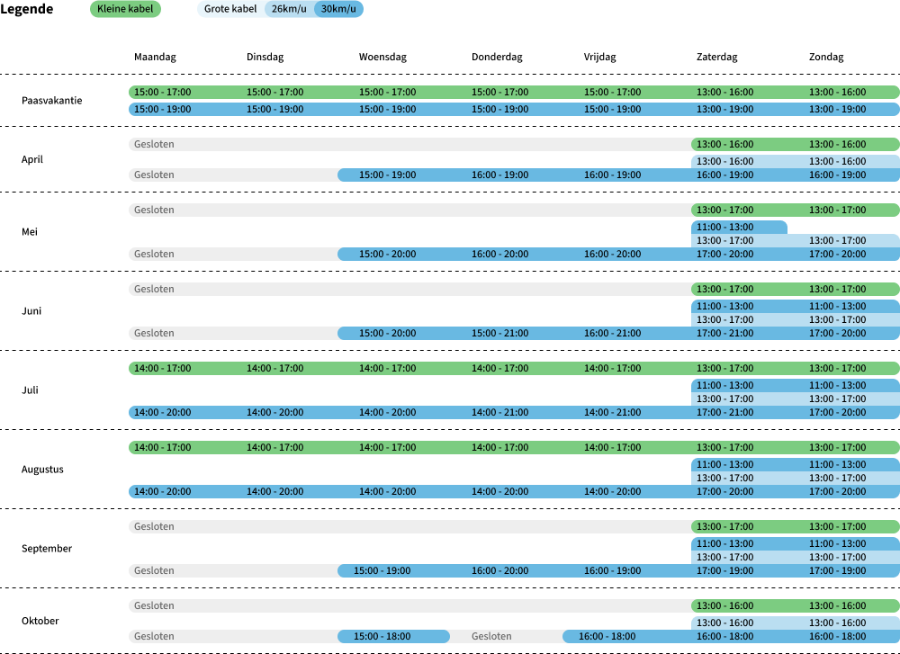 Notre parc est ouvert d’avril à octobre. Pendant les heures d’ouverture, vous pouvez facilement acheter des billets en ligne pour les activités mentionnées ci-dessus. Nous vous recommandons toujours de réserver vos billets à l’avance.