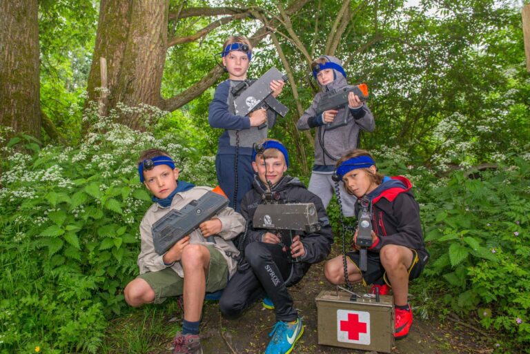 In de namiddag trekken we richting het bos voor een laserbattle. Gewapend met infraroodgeweren gaan de teams op missie — geen pijn, maar wel 100% spanning en fun!