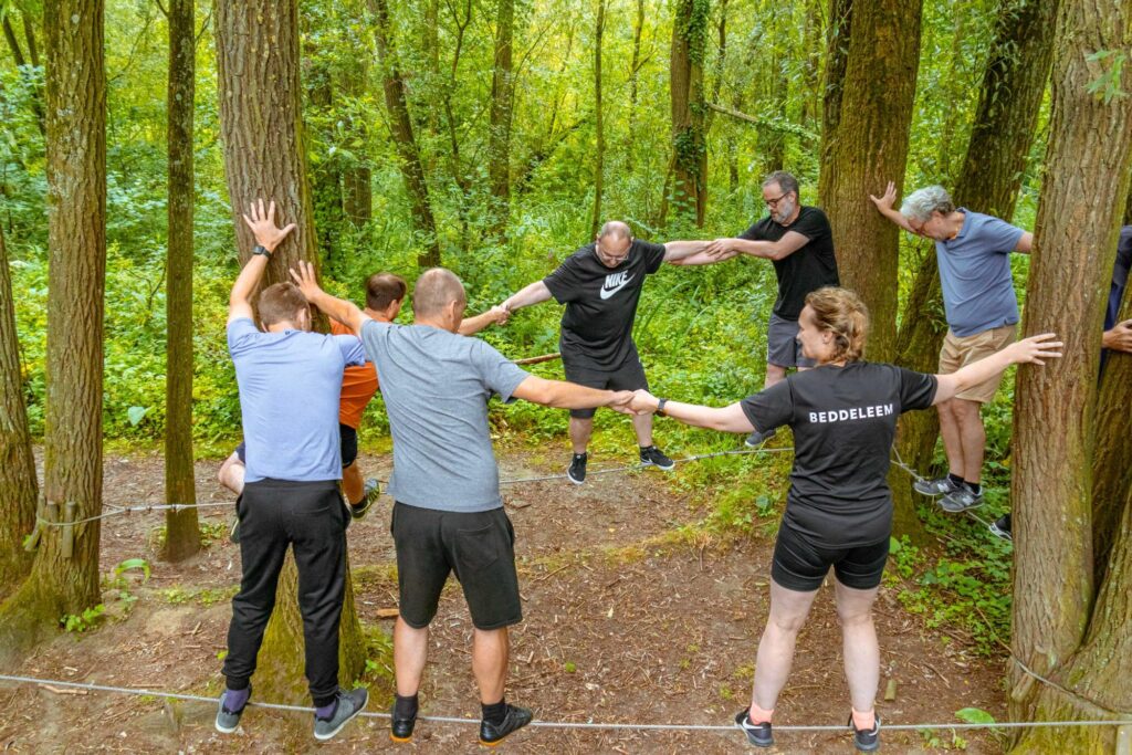 Het doel? De teams terug op scherp zetten na het bouwverlof en elkaar beter leren kennen. De aanpak? Een avontuurlijke, humoristische én verbindende totaalervaring in de natuur.